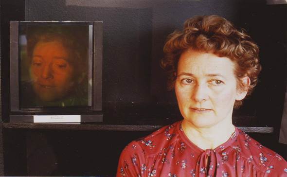 Au LOBE, Laboratoire d’Optique de Besançon, Nicole Aebischer travaillait sur les hologrammes animés ANVAR n° 15521, 1978. Les portraits animés enregistraient sur la même plaque dix expressions différentes d’un même sujet.
